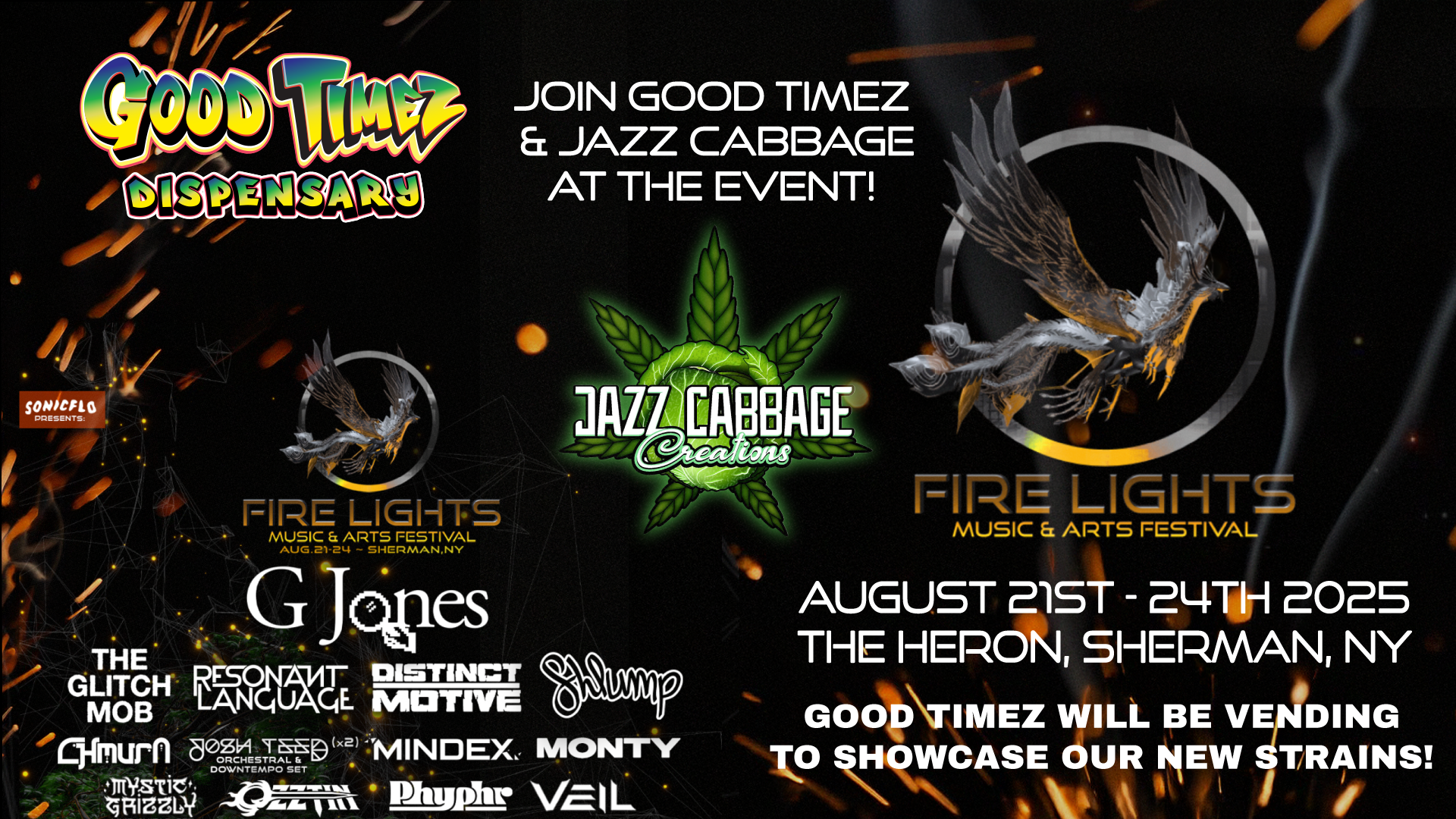 Good Timez Dispensary will be serving at Firelights Music Festival! The Heron, Sherman Ny August 12th 2025